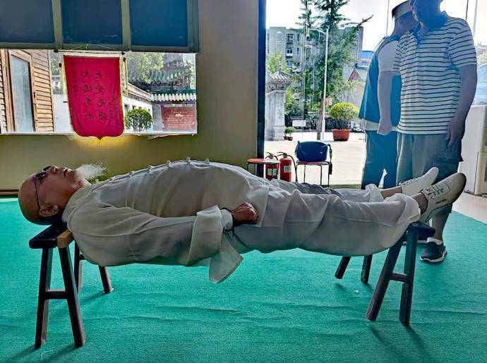 查拳的传承浸透了一代又一代人的汗水,李志干历经半世纪风雨仍未敛去功夫锋芒,兴致来时他能利落地展示“铁板桥”——头脚分架两凳,悬空仰卧,神态自若……